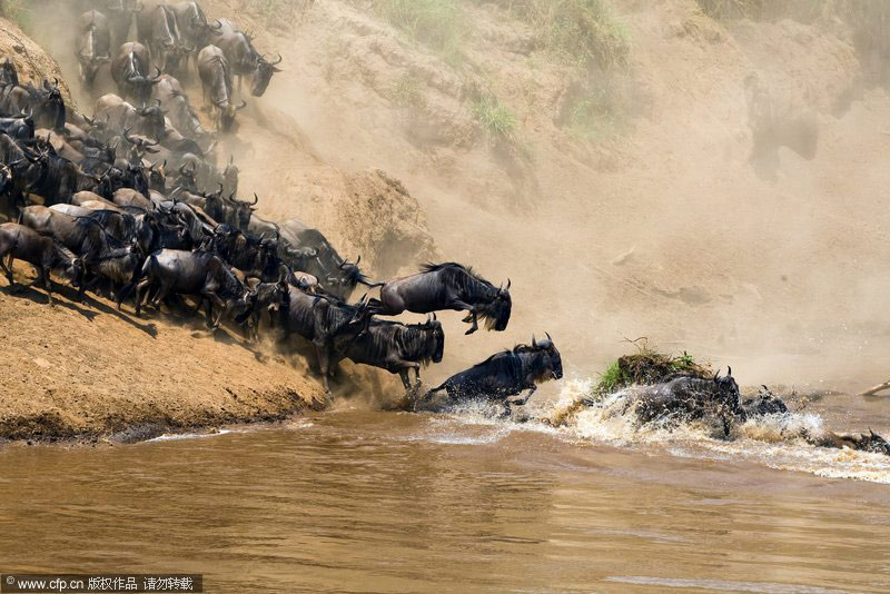 3月17日消息,捷克野生動物攝影師瓦拉夫·希爾哈(Vaclav Silha)在肯尼亞馬賽瑪拉(Masai Mara)國家保護區(qū)拍到了罕見的牛羚大遷移場面。上百萬牛羚集體穿越馬拉河,同時為了防止被水中的鱷魚咬到及逃避岸邊叢林里的老虎,牛羚群制造出巨大的聲響并急沖到對岸。barcroftmedia/CFP