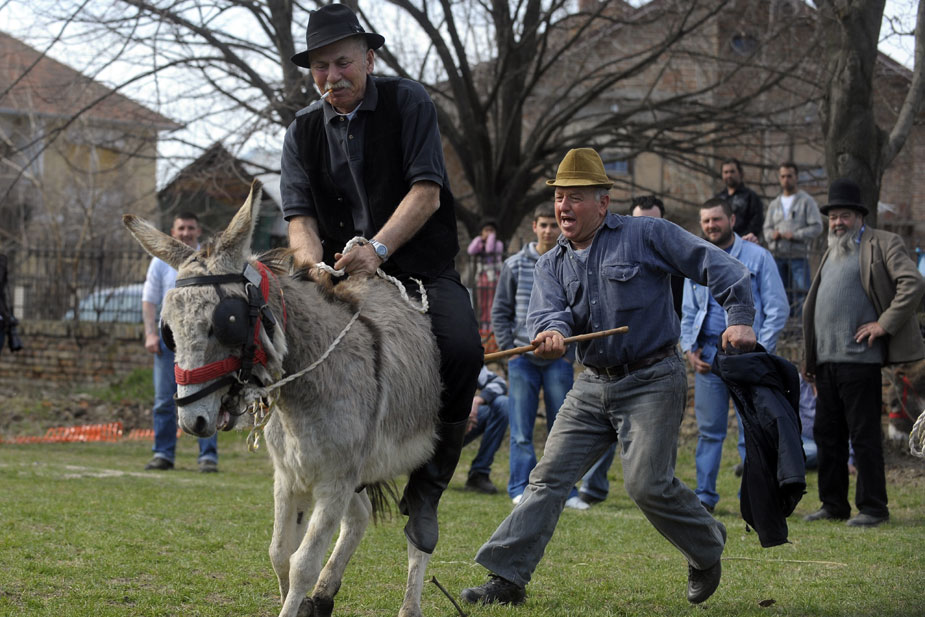 3月20日,在塞爾維亞首都貝爾格萊德西北30公里的一個(gè)村莊舉行了傳統(tǒng)的賽驢大賽。