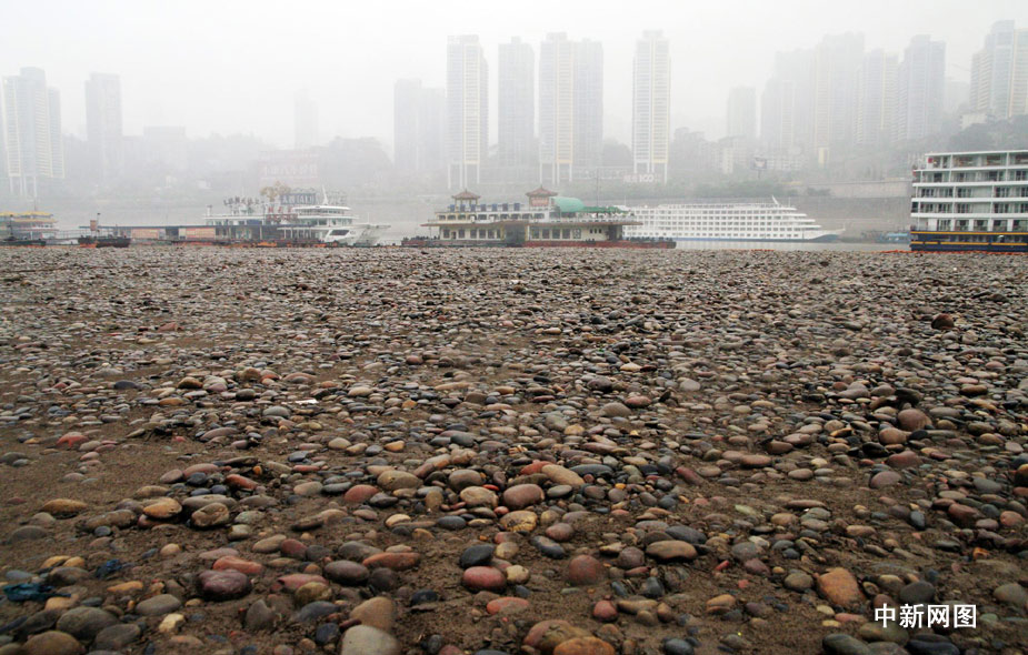 中新網重慶3月23日電 受去冬今春西南地區(qū)干旱影響,長江、嘉陵江重慶段水位持續(xù)下降。3月23日,記者在重慶市朝天門嘉陵江與長江交匯處看到,大面積河床裸露出來,部分水段已見底。據相關部門通報,截止3月22日,長江重慶段水位退落至0.31米,比去年同期低了近2米。孟幻 攝