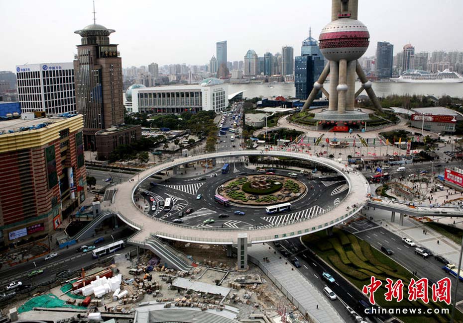 位于上海浦東陸家嘴中心地區(qū)的環(huán)形天橋——“明珠環(huán)”人行天橋基本建成,預(yù)計(jì)在世博會(huì)前正式投入啟用。“明珠環(huán)”毗鄰東方明珠廣播電視塔,圓周長(zhǎng)370米,設(shè)4個(gè)出口,并配有步行樓梯、自動(dòng)扶梯和殘疾人無(wú)障礙垂直電梯。它的建成已成為陸家嘴金融中心地區(qū)一大景觀(guān)。徐網(wǎng)林CFP