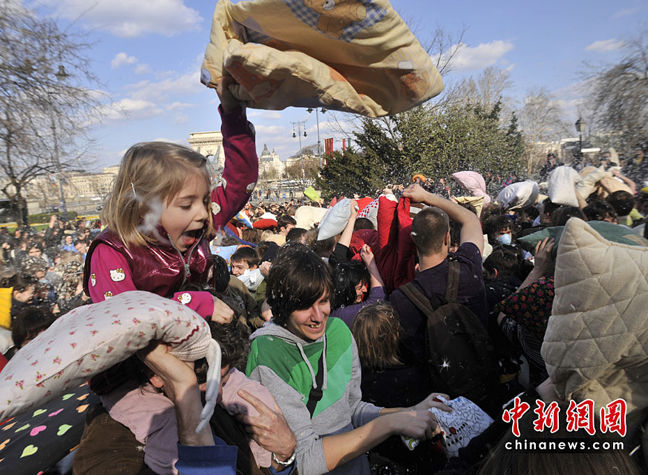 4月3日是國際“枕頭大戰(zhàn)”日。在這一天,多個(gè)國家的“枕頭大戰(zhàn)”愛好者相約走上街頭,用獨(dú)特的方式來慶祝他們的節(jié)日。圖片來源:中國新聞網(wǎng)