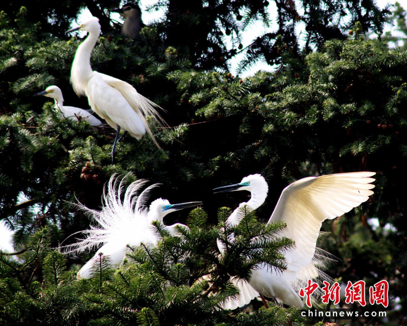 4月9日,一對白鷺在象山森林公園歡躍飛舞,譜寫一曲春日戀歌。四月,正值芳草萋萋,萬物生機(jī)勃勃。萬余只白鷺陸續(xù)抵達(dá)江西南昌象山森林公園棲息,繁衍后代,成為鄱陽湖濕地的一大獨特景觀, 吸引眾多攝影愛好者前來拍攝和觀賞。孫永勝 胡國林 攝