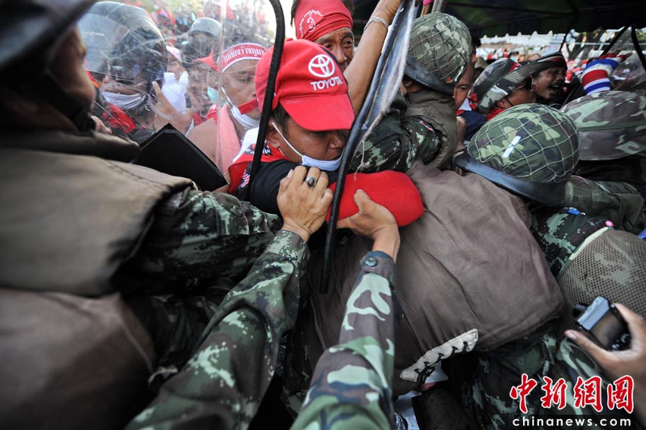 4月10日,泰國軍隊在首都曼谷對支持前總理他信的“紅衫軍”進(jìn)行武力驅(qū)散,雙方爆發(fā)嚴(yán)重沖突,目前已造成18人死亡,數(shù)百人受傷。圖片來源:中國新聞網(wǎng)