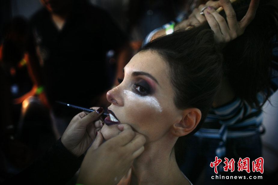 4月13日,墨西哥首都墨西哥城奔馳時(shí)裝周,美模們?cè)谂_(tái)前展現(xiàn)靚麗風(fēng)采,后臺(tái)則讓我們看到了完全不同的世界。