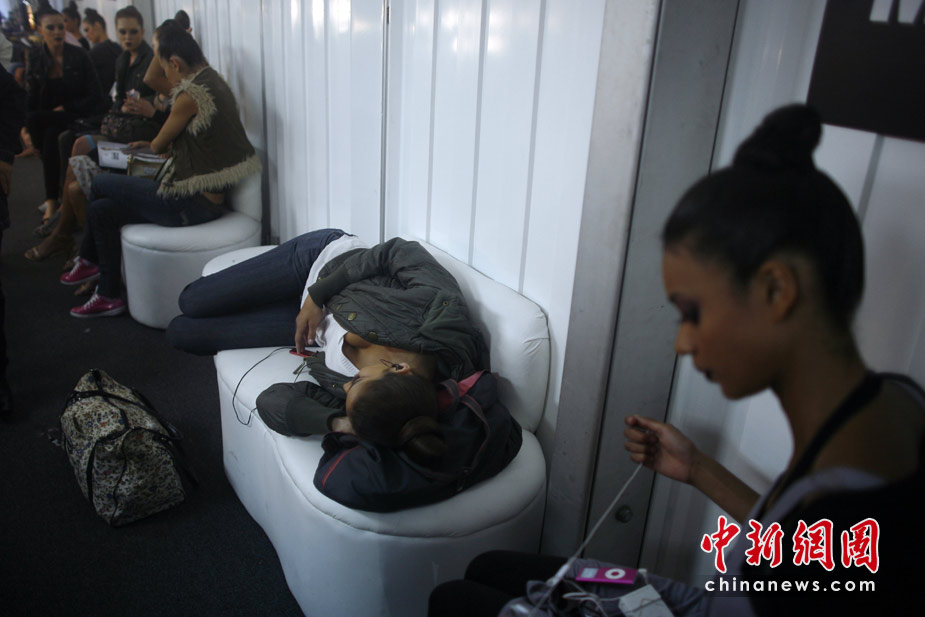 4月13日,墨西哥首都墨西哥城奔馳時(shí)裝周,美模們?cè)谂_(tái)前展現(xiàn)靚麗風(fēng)采,后臺(tái)則讓我們看到了完全不同的世界。
