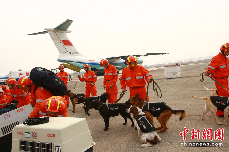 圖為4月14日下午,中國(guó)國(guó)際地震救援隊(duì)攜帶重型搜救設(shè)備搭乘空軍專(zhuān)機(jī)趕赴青海玉樹(shù)震區(qū)。中新社發(fā) 譚超 攝