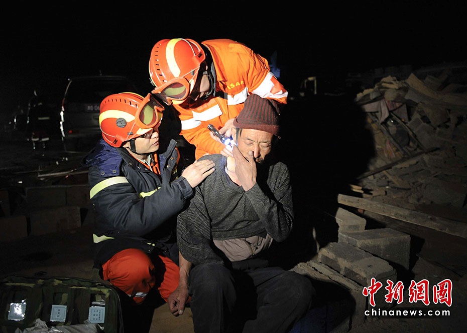 圖為4月15日凌晨1時(shí),中國(guó)國(guó)際地震救援隊(duì)隊(duì)員在玉樹(shù)地震災(zāi)區(qū)展開(kāi)救援工作,連夜救治玉樹(shù)地震傷員。中新社發(fā) 廖攀 攝