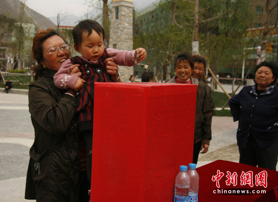 4月15日,汶川發(fā)動各方力量向青海玉樹災(zāi)區(qū)籌集善款,汶川縣政府向村級以上單位發(fā)出捐款通知,在汶川縣鍋莊廣場啟動,汶川紅十字會在當(dāng)天就籌得善款5萬余元。中新社發(fā) 汶川宣傳部 供