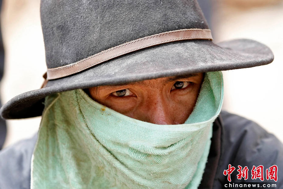 2010年4月16日,青海玉樹藏族自治州玉樹縣結(jié)古鎮(zhèn)一所中學(xué)的震災(zāi)救援現(xiàn)場,一名救援人員的目光中充滿渴望,期待生命奇跡。中新社發(fā) 盛佳鵬 攝