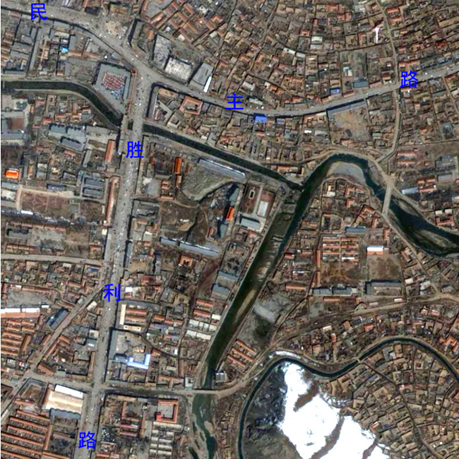 利用對(duì)地觀測(cè)中心2010年4月16日獲取的高分辨率航空遙感數(shù)據(jù),提取出玉樹(shù)州結(jié)古鎮(zhèn)城區(qū)范圍內(nèi)地震破壞最嚴(yán)重或典型地區(qū),使之與GoogleEarth中相應(yīng)位置的震前遙感衛(wèi)星數(shù)據(jù)進(jìn)行對(duì)比,直觀展現(xiàn)結(jié)古鎮(zhèn)在此次地震中的受影響程度。圖片來(lái)源:中國(guó)科學(xué)院