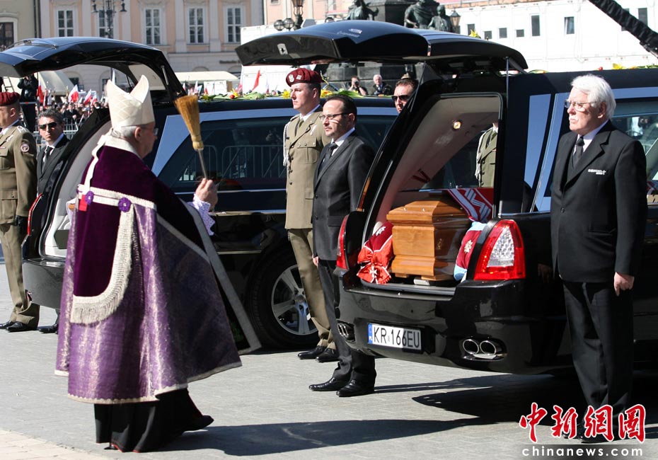 當(dāng)?shù)貢r間4月18日,卡欽斯基夫婦的葬禮在波蘭南部城市克拉科夫舉行。波蘭總統(tǒng)卡欽斯基及其夫人乘坐的專機(jī)10日在俄羅斯斯摩棱斯克失事,機(jī)上人員全部遇難。圖片來源:中國新聞網(wǎng)