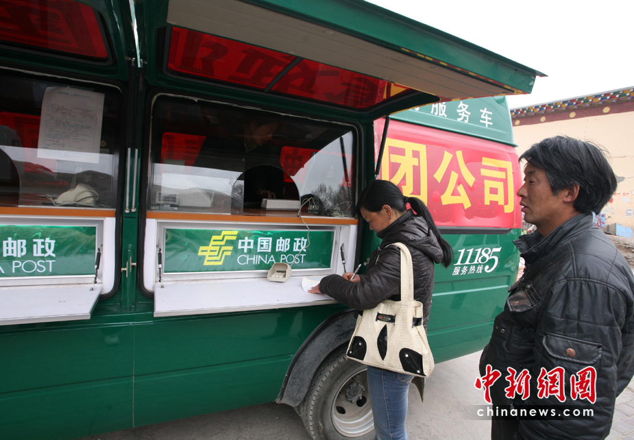 4月20日,寧夏郵政抗震救災(zāi)突擊隊六輛全電子移動郵政業(yè)務(wù)車開進玉樹地震災(zāi)區(qū),開始受理市民信函、金融等業(yè)務(wù)辦理,目前玉樹城內(nèi)已有多家銀行機構(gòu)和商業(yè)網(wǎng)點開始恢復營業(yè)。圖為玉樹街頭市民正在排隊辦理郵政業(yè)務(wù)。中新社發(fā) 劉忠俊 攝