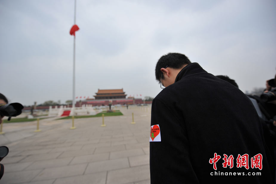 4月21日,為表達(dá)全國(guó)各族人民對(duì)青海玉樹(shù)地震遇難同胞的深切哀悼,中國(guó)國(guó)務(wù)院決定,舉行全國(guó)哀悼活動(dòng),全國(guó)和駐外使領(lǐng)館下半旗志哀,停止公共娛樂(lè)活動(dòng)。圖為北京天安門廣場(chǎng)上哀悼遇難者的民眾。中新網(wǎng)記者 金碩 攝