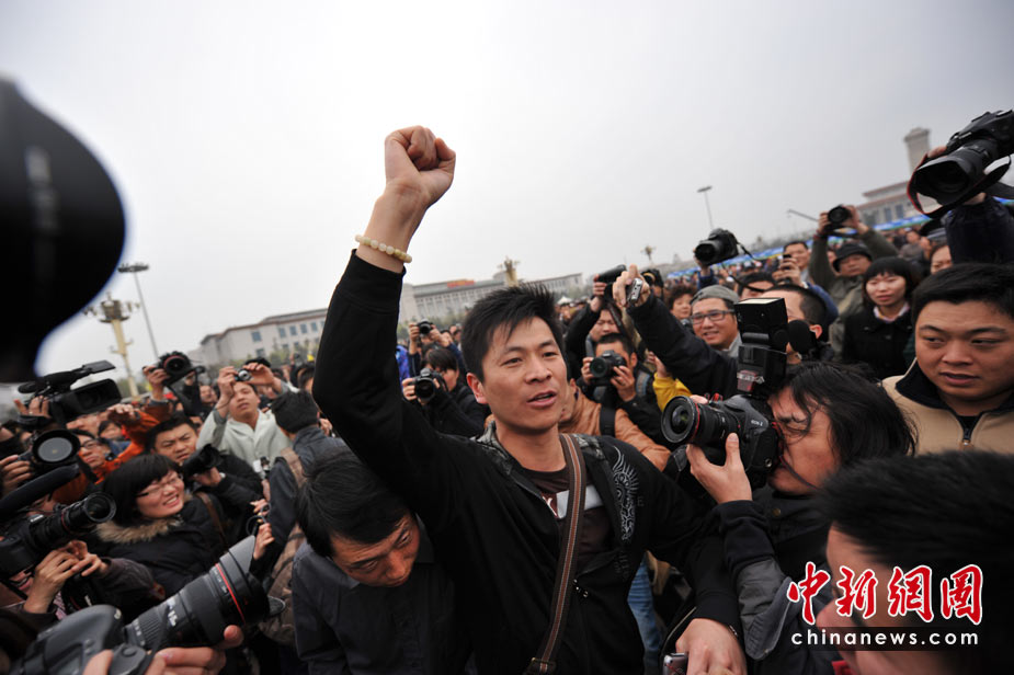 4月21日,為表達(dá)全國各族人民對青海玉樹地震遇難同胞的深切哀悼,中國國務(wù)院決定,舉行全國哀悼活動,全國和駐外使領(lǐng)館下半旗志哀,停止公共娛樂活動。圖為北京天安門廣場上哀悼遇難者的民眾。中新網(wǎng)記者 金碩 攝