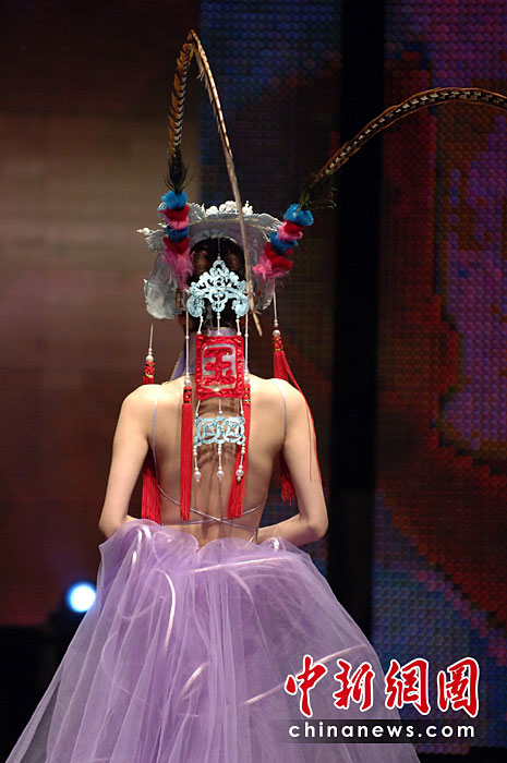 4月20日晚,首屆海西國際時(shí)裝周在福建石獅閉幕,本屆時(shí)裝周吸引了來自海峽兩岸的紡織服裝界企業(yè)家和知名服裝設(shè)計(jì)師。期間舉辦了12場(chǎng)時(shí)裝品牌和設(shè)計(jì)師作品動(dòng)態(tài)發(fā)布會(huì)。圖為模特展示古今潮流結(jié)合的服裝。王東明 攝