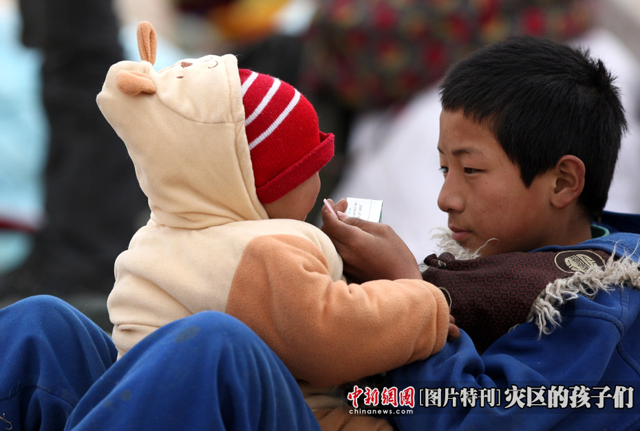 7.1級強(qiáng)震襲來,家園坍塌,親人逝去。面對災(zāi)難,震區(qū)的許多孩子表現(xiàn)出了令人感動的堅(jiān)強(qiáng)。孩子們,我們由衷地希望這份堅(jiān)強(qiáng)能超越你們的悲傷,因?yàn)榫驮诿魈,幸福還會回到你們身旁。中新社記者 盛佳鵬 攝
