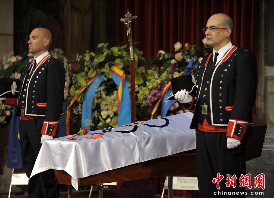 西班牙當?shù)貢r間4月22日18時,國際奧委會終身名譽主席薩馬蘭奇的葬禮在巴塞羅那舉行,包括西班牙國王夫婦、現(xiàn)任國際奧委會主席羅格、F1車手阿隆索、巴薩俱樂部主席等在內(nèi)的政界和體育界4000多人出席,網(wǎng)球名將納達爾等負責抬靈柩,送別薩翁最后一程。