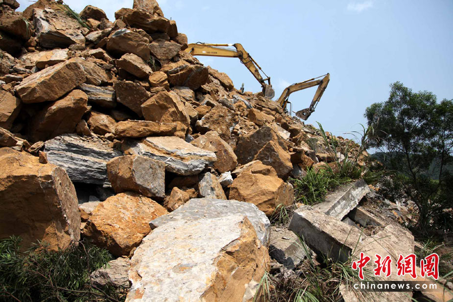 4月26日,臺(tái)灣“北二高”基隆段山崩斷橋意外第2天,大批工程人員使用近50臺(tái)怪手持續(xù)開挖,但尚未尋獲被埋的車輛和失蹤者。這起“走山”斷橋意外發(fā)生在25日,一座高百米的山坡全然崩坍,土石覆蓋道路長(zhǎng)約200米、面積達(dá)3個(gè)足球場(chǎng)之大,令南下北上的交通大受影響。 董會(huì)峰 攝