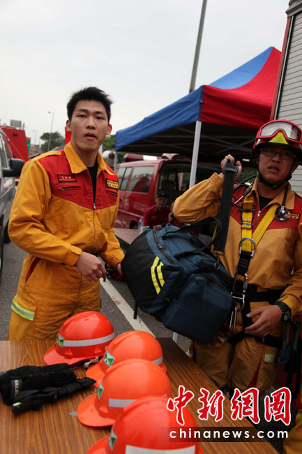 4月26日,臺(tái)灣“北二高”基隆段山崩斷橋意外第2天,大批工程人員使用近50臺(tái)怪手持續(xù)開(kāi)挖,但尚未尋獲被埋的車(chē)輛和失蹤者。這起“走山”斷橋意外發(fā)生在25日,一座高百米的山坡全然崩坍,土石覆蓋道路長(zhǎng)約200米、面積達(dá)3個(gè)足球場(chǎng)之大,令南下北上的交通大受影響。 圖為特種搜救隊(duì)員在現(xiàn)場(chǎng)待命。 董會(huì)峰 攝