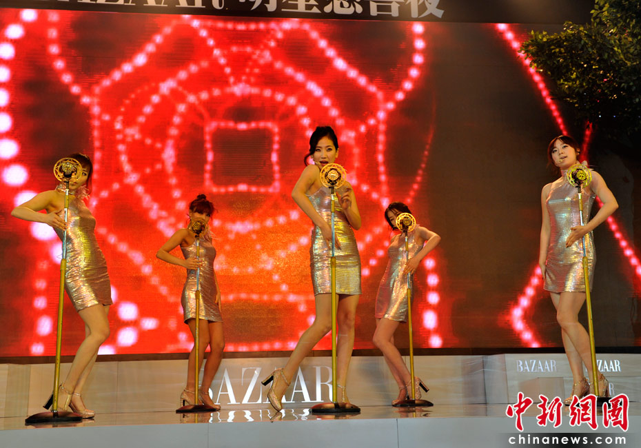 4月25日,由《時尚芭莎》雜志社主辦的第8屆“BAZAAR明星慈善夜”活動在上海舉行,圖為韓國少女組合Wonder Girl參加晚宴并現(xiàn)場演唱漢語版《nobody》。 中新網(wǎng)記者 金碩 攝
