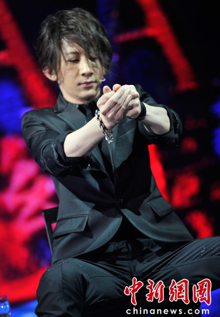 4月25日,由《時尚芭莎》雜志社主辦的第8屆“BAZAAR明星慈善夜”活動在上海舉行,圖為劉謙為現(xiàn)場嘉賓表演精彩炫目的魔術。 中新網(wǎng)記者 金碩 攝