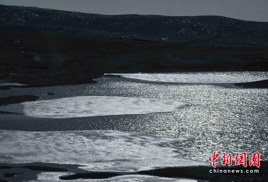 屬于長江、黃河、瀾滄江三江源地區(qū)的青海玉樹地震災(zāi)區(qū),自然保護區(qū)的18個核心區(qū)域中,有10個位于玉樹州境內(nèi),占總面積的72%。4月下旬,記者深入災(zāi)區(qū)縱深各地,災(zāi)后重建正面臨保護生態(tài)環(huán)境、為三江源建起一道生態(tài)屏障的難題;近日緊迫的防疫工作,必須使用滅菌效果好、對環(huán)境無污染的消毒劑。圖為星羅棋布的湖泊正在春風化冰之時。中新社記者 賈國榮攝