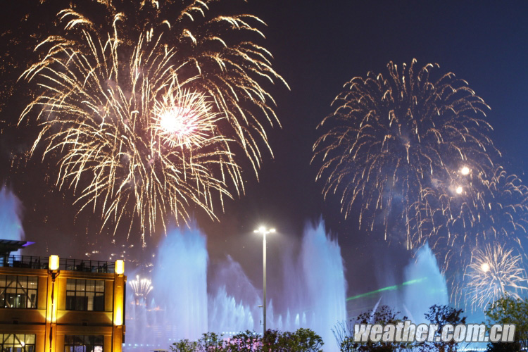 2010年4月27日,上海世博會(huì)開幕式彩排順利進(jìn)行。圖為藍(lán)色噴泉。卞赟 攝