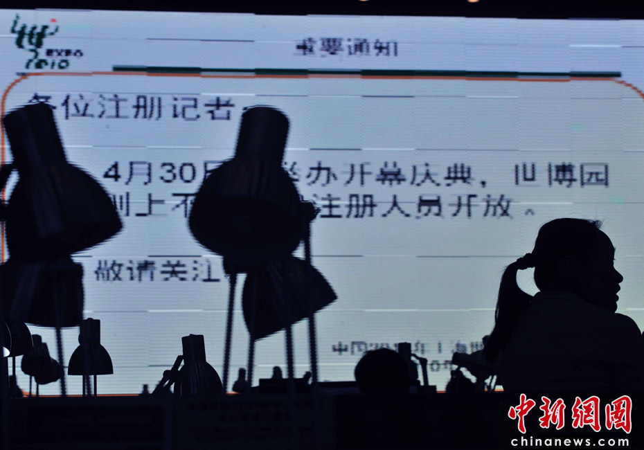 位于上海世博會核心區(qū)域的新聞中心,在4月30日開幕前夕嶄新啟用,連續(xù)兩天卻為有限度的運行,記者們只能在安檢門和新聞中心大門之間,封閉在環(huán)保大巴里往來,完全沒可能出車采訪。于是,云集一萬多記者的媒體大戰(zhàn),悄然在新聞中心緊鑼密鼓地策劃謀略之中,“報道戰(zhàn)爭”將在今晚明天一觸即發(fā)。