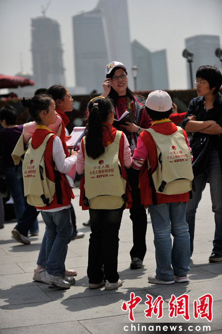 30日上午,記者在上海外灘采訪時遇到小主人報新聞學(xué)校的“小記者”們在采訪,成為他們今天的第一個采訪對象!靶∮浾摺眰冏铌P(guān)心的問題是關(guān)于世博會,“如何讓世界變得更美好”。她們都表示非常想去看世博會,最想看的是中國館,但是要留到最后看,“因為其它館都會拆掉,中國館會保留下來”。“小記者”們說,自己要從身邊小事做起,做有文明有素質(zhì)的人,并表示希望自己將來成為真正的“大記者”,更好地報道上海。吳歆/文 王紅綱/圖
