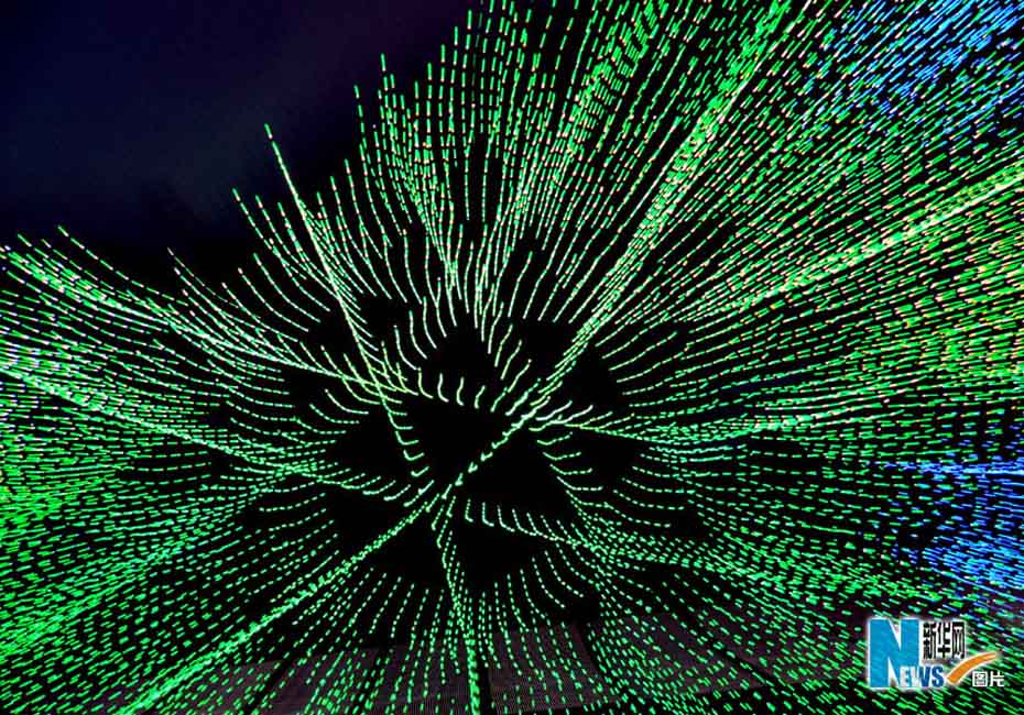 夜色下的世博園,迷離而夢幻。圖為世博軸陽光谷。圖片來源:新華網(wǎng) 郭毅攝