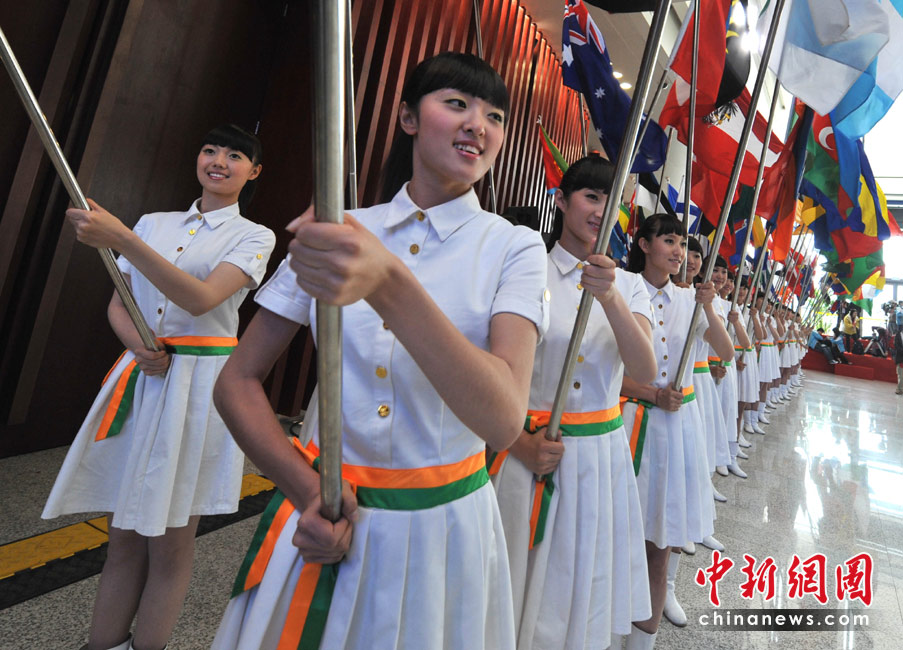 5月1日,2010年上海世博會(huì)正式開(kāi)園,英姿颯爽的女子旗手們參加清晨的儀式。中新社記者 賈國(guó)榮攝