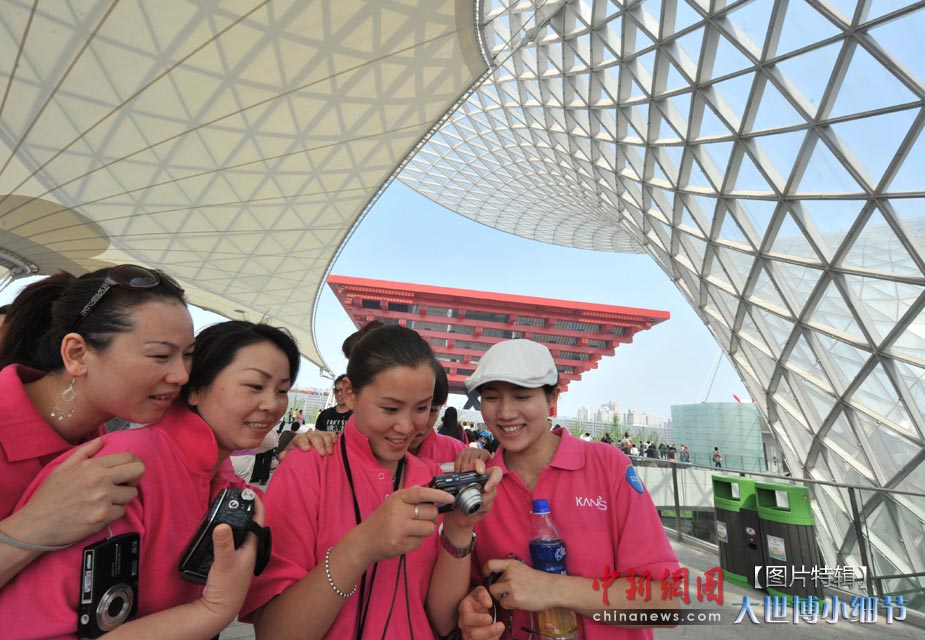 5月1日,上海世博會正式開園,當日有20萬人次的游客參觀了世博園。世博首日,許許多多的小細節(jié)都帶給人一種全新的體驗。圖為游客為在中國館前找到最佳拍攝位置而喜笑顏開。中新社發(fā) 賈國榮 攝