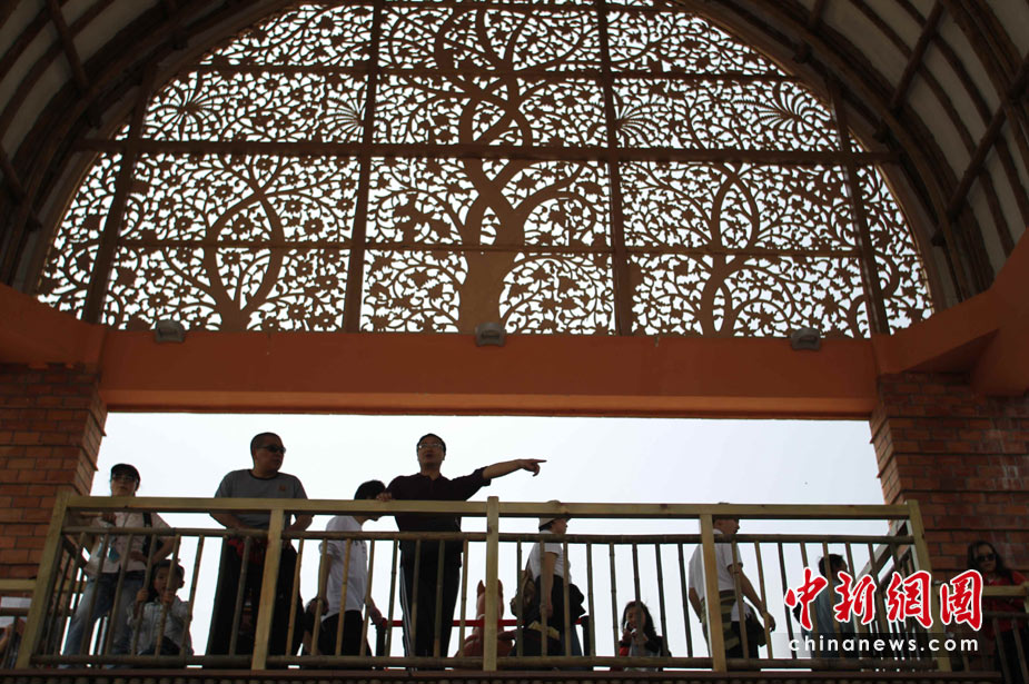 5月2日,觀眾在上海世博會(huì)印度館參觀。電影《阿凡達(dá)》中神秘的“生命之樹(shù)”在印度館現(xiàn)身,拱形大門(mén)上鑲嵌著銅質(zhì)的“生命之樹(shù)”圖案,中新社發(fā) 蘇丹 攝