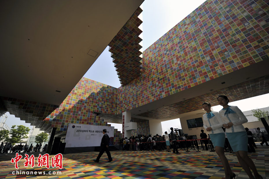 與普通建筑物不同,韓國國家館由于使用韓文字母構(gòu)筑,其底層的絕大部分為開放空間,也就是說沒有門,以充分體現(xiàn)韓國的開放性和包容性。展館底層地面,鋪設(shè)了不同色彩的地磚。據(jù)介紹,色彩斑斕的地面其實是韓國首都首爾地圖,這張地圖為首爾實際面積的1/300。濃縮的首爾居然移植到了上海,其嶄新的符號化空間,為上海與首爾之間的直接交流建立起一個全新的平臺。中新網(wǎng)記者 王紅綱 攝