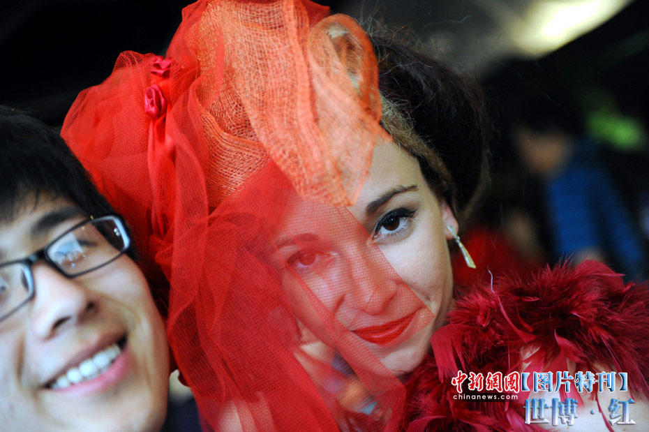 紅色象征著熱量與活力,紅色也象征著興奮與激情,在世博園區(qū)內(nèi)游覽,總會(huì)有一抹濃艷的紅色闖入到記者鏡頭之中,讓世博變得更加火辣。圖為法國(guó)館工作人員與游客合影。中新社記者 廖攀 攝