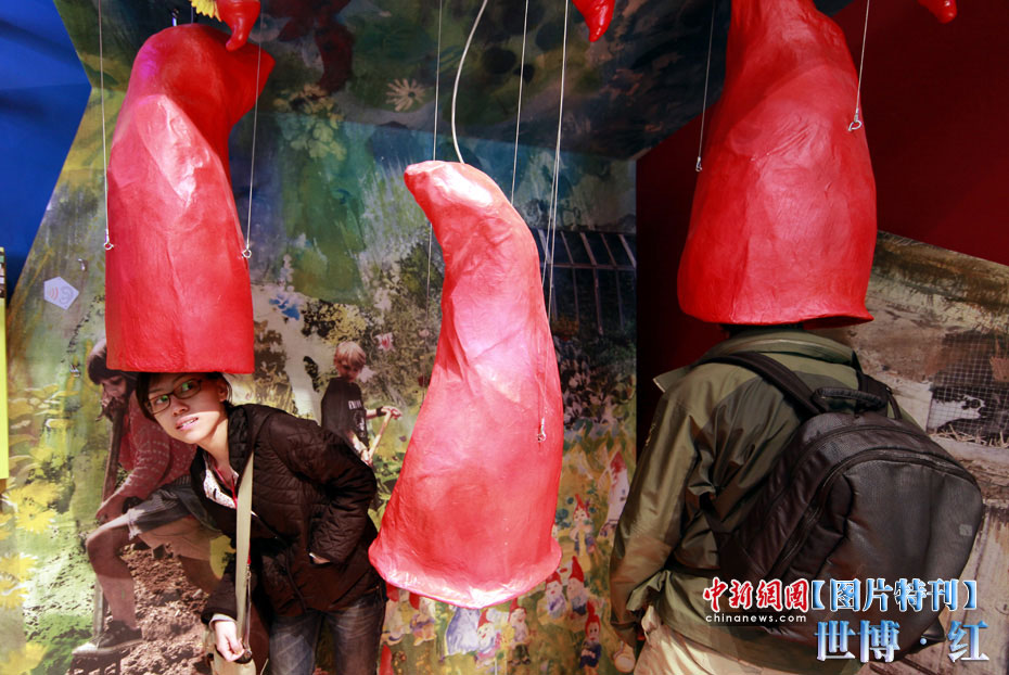 紅色象征著熱量與活力,紅色也象征著興奮與激情,在世博園區(qū)內(nèi)游覽,總會(huì)有一抹濃艷的紅色闖入到記者鏡頭之中,讓世博變得更加火辣。圖為德國館內(nèi)的互動(dòng)小游戲。中新社記者 盛佳鵬 攝