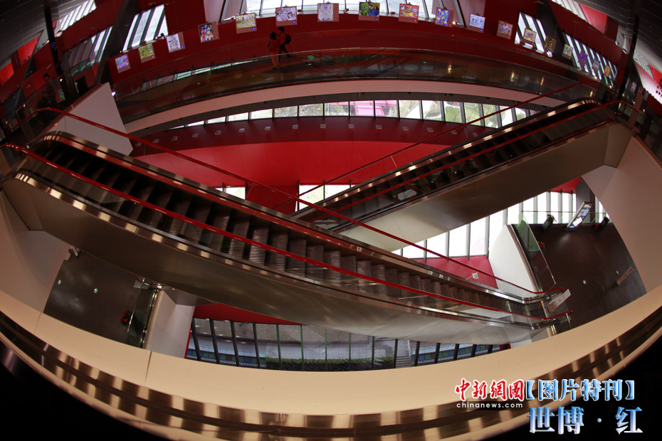 紅色象征著熱量與活力,紅色也象征著興奮與激情,在世博園區(qū)內(nèi)游覽,總會有一抹濃艷的紅色闖入到記者鏡頭之中,讓世博變得更加火辣。圖為中國館的扶梯。中新社記者 盛佳鵬 攝