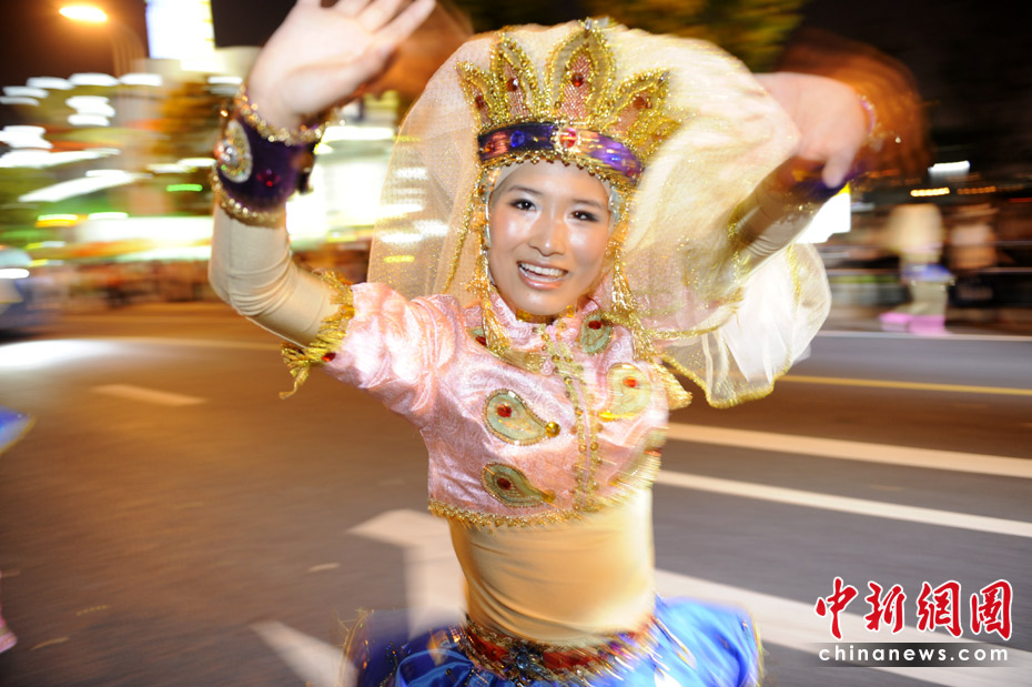 5月2日晚,由一輛輛充滿異域風(fēng)情的花車和身著盛裝的表演者組成的“歡樂盛裝大巡游”在世博園區(qū)舉行。中新網(wǎng)記者 王紅綱 攝