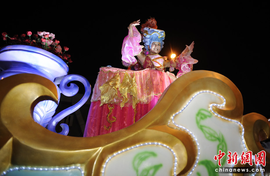5月2日晚,由一輛輛充滿異域風(fēng)情的花車和身著盛裝的表演者組成的“歡樂(lè)盛裝大巡游”在世博園區(qū)舉行。中新網(wǎng)記者 王紅綱 攝