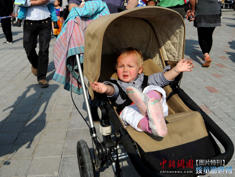 隨著上海世博園正式開園,各大展館迎來了八方游客,其中不乏一些小孩子也來上海感受世博盛況。中新社發(fā) 許康平 攝