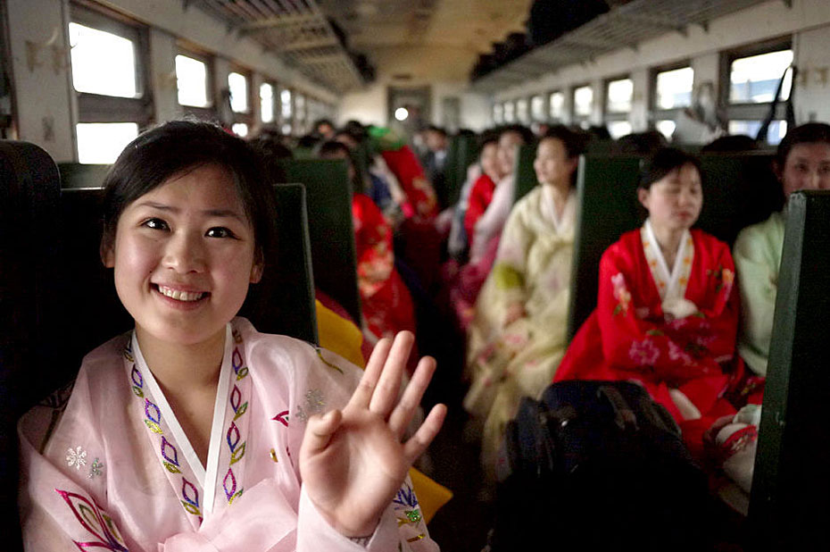 5月2日,載著198名朝鮮紅樓夢劇組演員的專列駛?cè)氲|口岸。由朝鮮國家級藝術(shù)團-血海歌劇團創(chuàng)作的歌舞劇《紅樓夢》將于5月6日至9日登陸北京電視臺大劇院,這個超大演員陣容亦創(chuàng)下近年來華國外演出人數(shù)之最。圖片來源:新華網(wǎng)