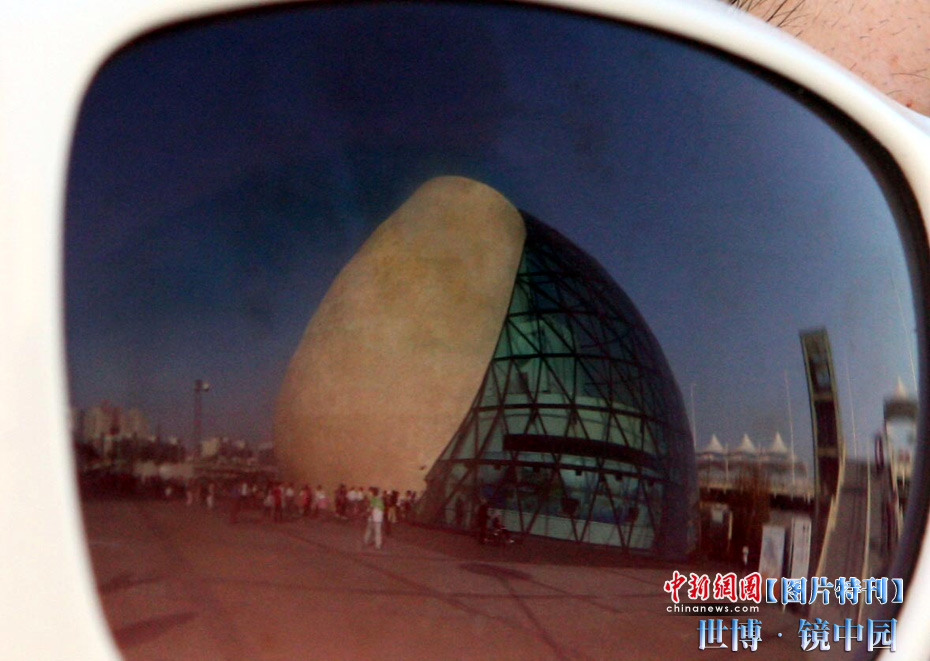 世博園開園3天,天氣一直晴熱,不少游客帶起墨鏡來遮擋刺目的陽光,從鏡片的折射中看世博園,別有一番趣味。中新社記者 湯彥俊攝
