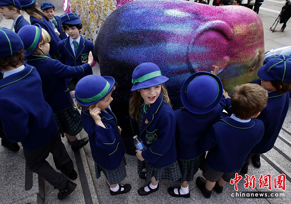 5月4日,2010年倫敦大象游行活動(dòng)當(dāng)日在特拉法爾加廣場啟動(dòng)。260個(gè)真象大小的彩繪雕塑將在倫敦各處展出,并將于6月30日拍賣為慈善組織籌款。圖片來源:中國新聞網(wǎng)
