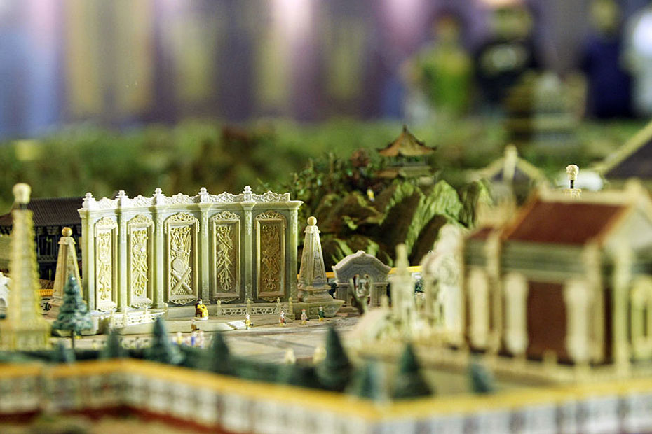 5月4日,游客在參觀縮微版“圓明園”。近日,一座“全景式巨型立雕圓明園”在上海世博會世界貿(mào)易中心協(xié)會館亮相。這座縮微版的“圓明園”以1比150的比例制作而成,再現(xiàn)了全盛時期的圓明園雄偉壯觀的全景。圖片來源:新華網(wǎng) 裴鑫 攝