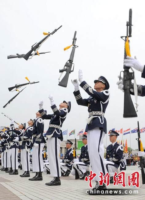 5月5日,韓國(guó)兒童節(jié),韓國(guó)突擊隊(duì)員在國(guó)家戰(zhàn)爭(zhēng)博物館為孩子們表演。