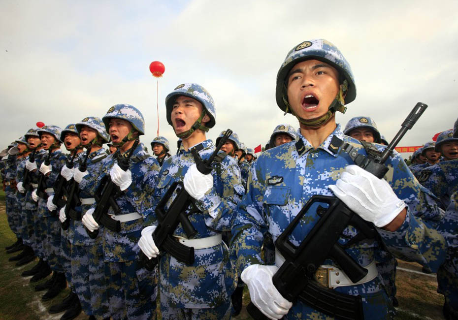5月5日,海軍陸戰(zhàn)隊(duì)員接受檢閱。圖片來源:新華網(wǎng) 查春明攝