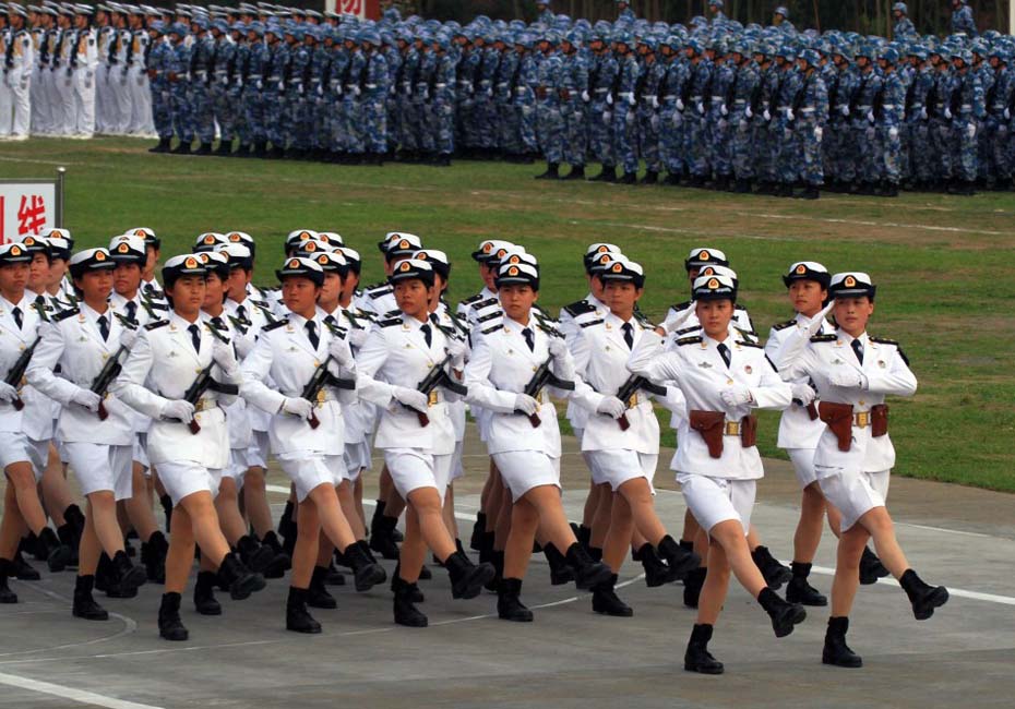 海軍陸戰(zhàn)隊(duì)女兵方隊(duì)通過(guò)主席臺(tái)。圖片來(lái)源:新華網(wǎng) 查春明攝