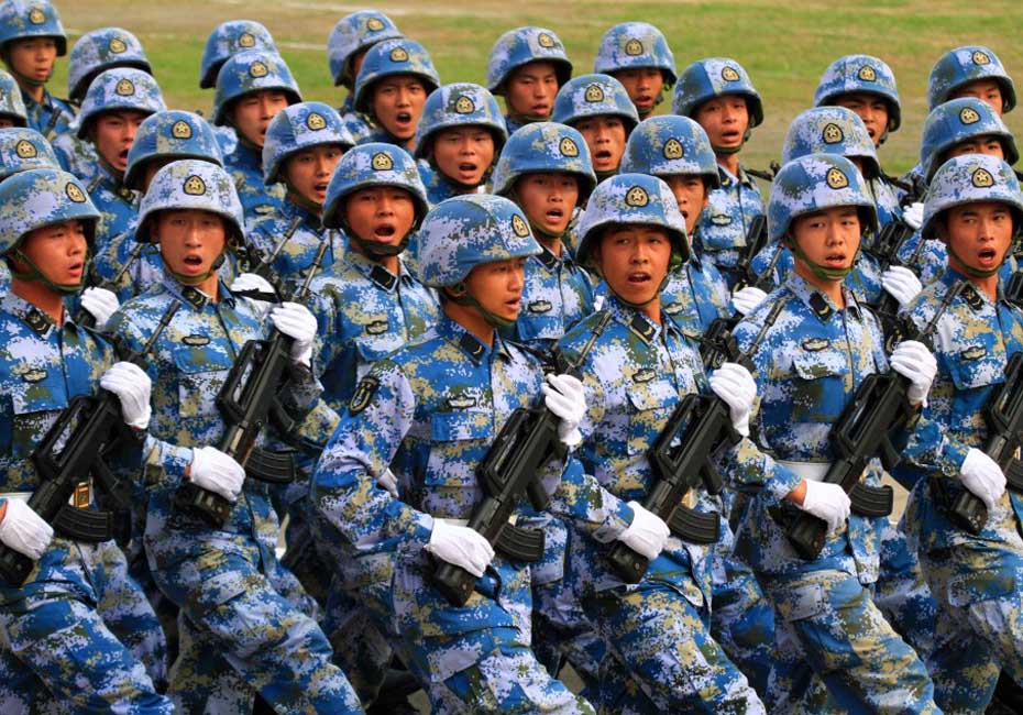 海軍陸戰(zhàn)隊(duì)員通過主席臺。圖片來源:新華網(wǎng) 查春明攝
