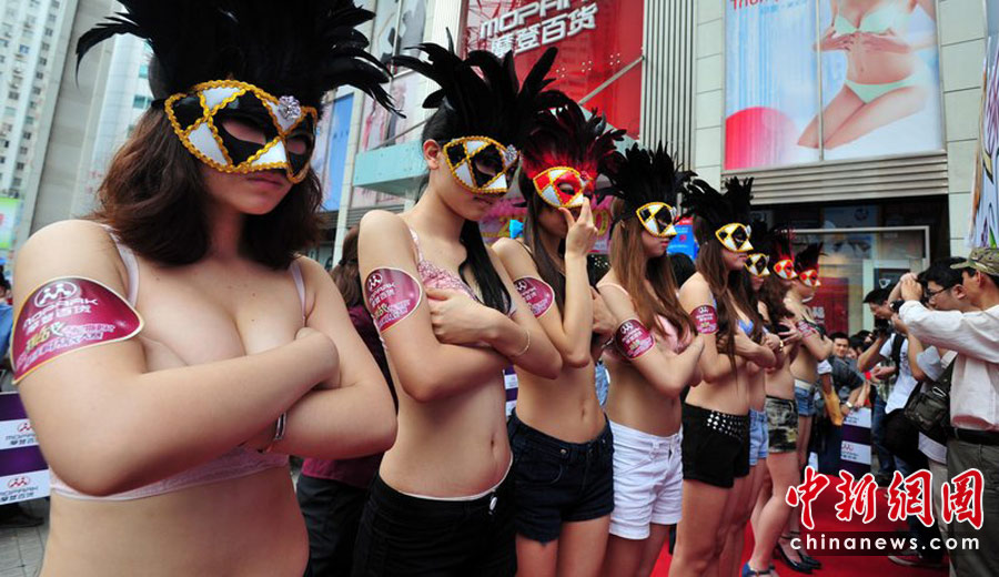2010年5月8日,在廣州天河某個(gè)百貨商場(chǎng)門口上演了一場(chǎng)另類的“解內(nèi)衣”比賽。