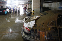 5月10日,廣州中?党堑叵峦\噲鲈馑钠嚱K于重新出水。受5月7日的大雨影響,廣州市東圃地區(qū)的中海康城的地下停車庫發(fā)生嚴重的水浸。經(jīng)過4天日夜不斷地抽水,5月10號上午,地下車庫里面的水終于干了。4天來一直轟鳴的水泵昨日終于停了下來。早晨7時許,眾車主陸續(xù)來到車庫,370多臺車橫七豎八排開,幾只塘虱在淤泥里挪動著。在拖車出庫的時候,不少車主淚流滿面。